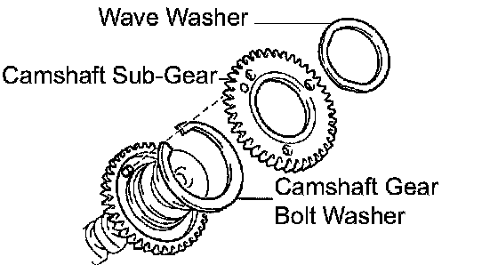 b. Install the camshaft gear bolt washer and the camshaft sub-gear.
