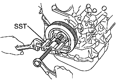 25. REMOVE CRANKSHAFT TIMING PULLEY