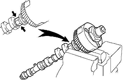 a. Clamp the camshaft in a vise on the hexagonal lobe.
