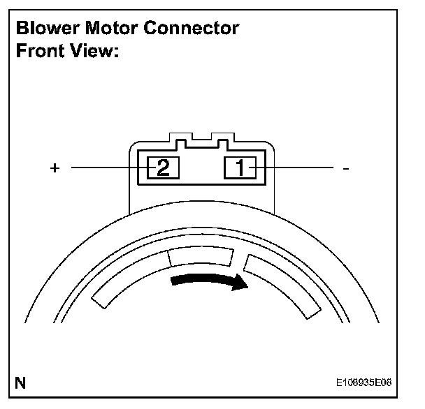 b. Connect the negative (-) lead connected to terminal 1 of the blower motor connector, the positive (+) lead to terminal 2.