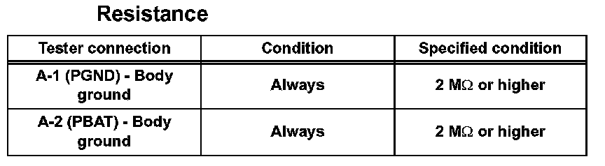 b. Using a megaohm tester, measure the resistance according to the value(s) in the table.