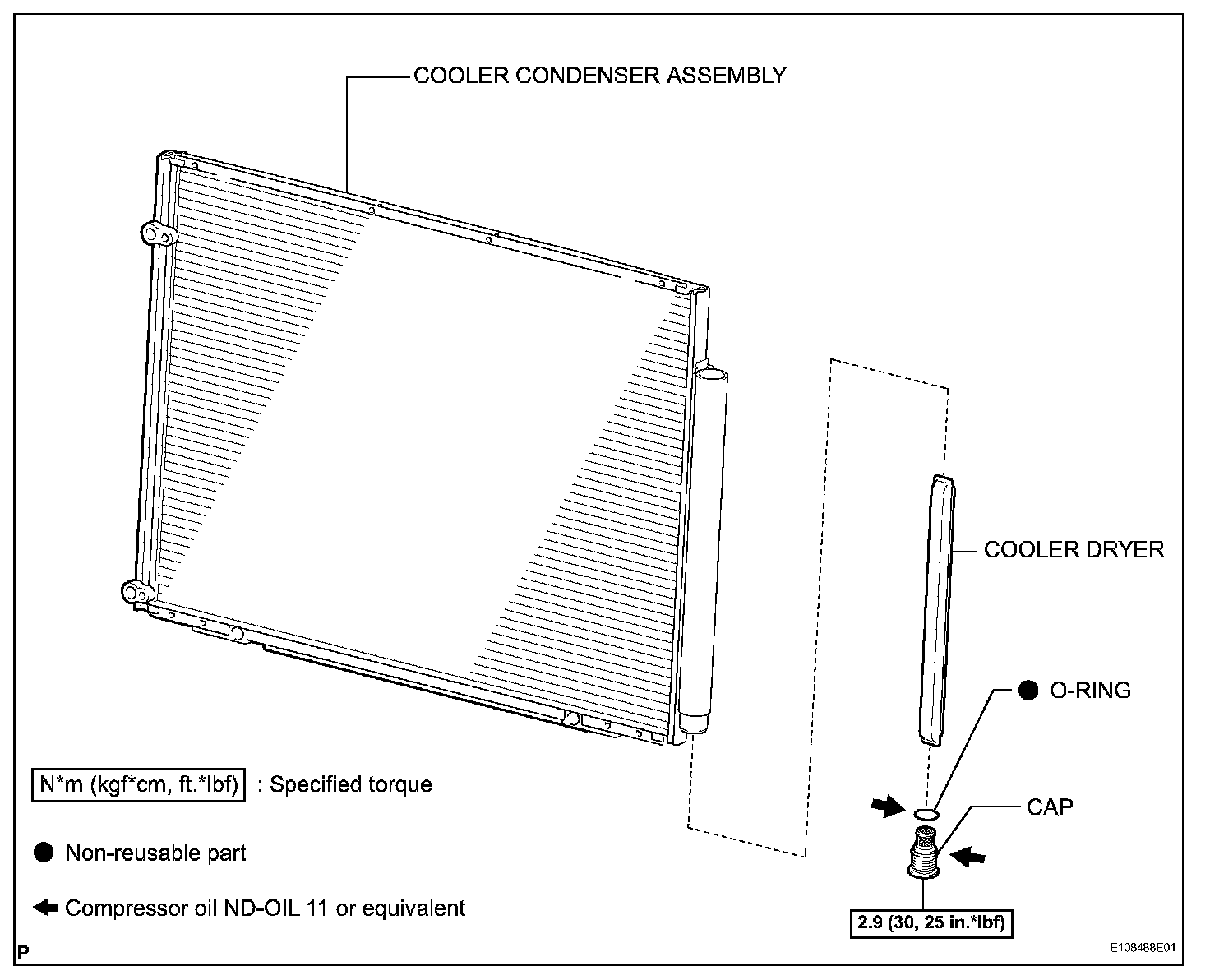 HINT: If the condenser is replaced with a new one, add compressor oil to the new condenser.