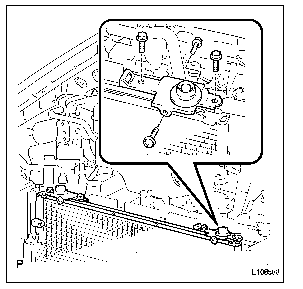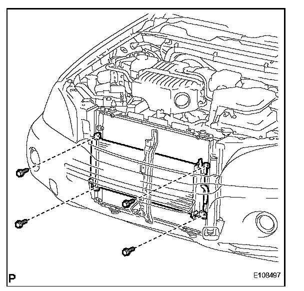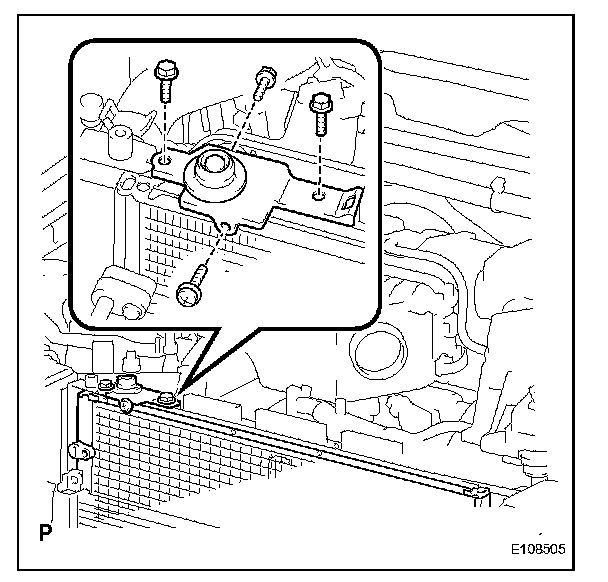 b. Remove the 4 bolts and disconnect sub with fan radiator assembly.