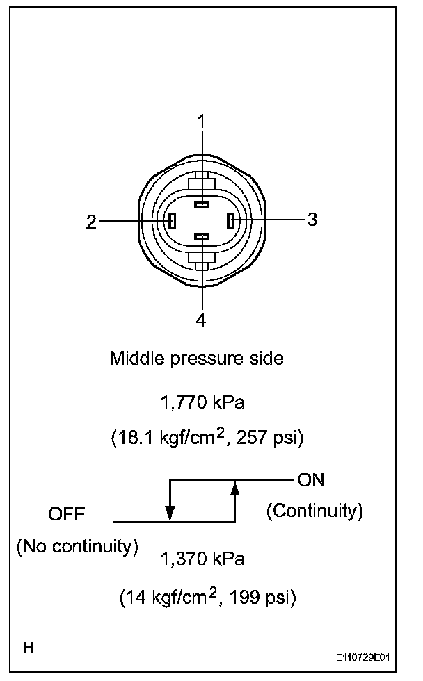 3. Check continuity between the terminals when refrigerant pressure is changed, as given in the illustration.