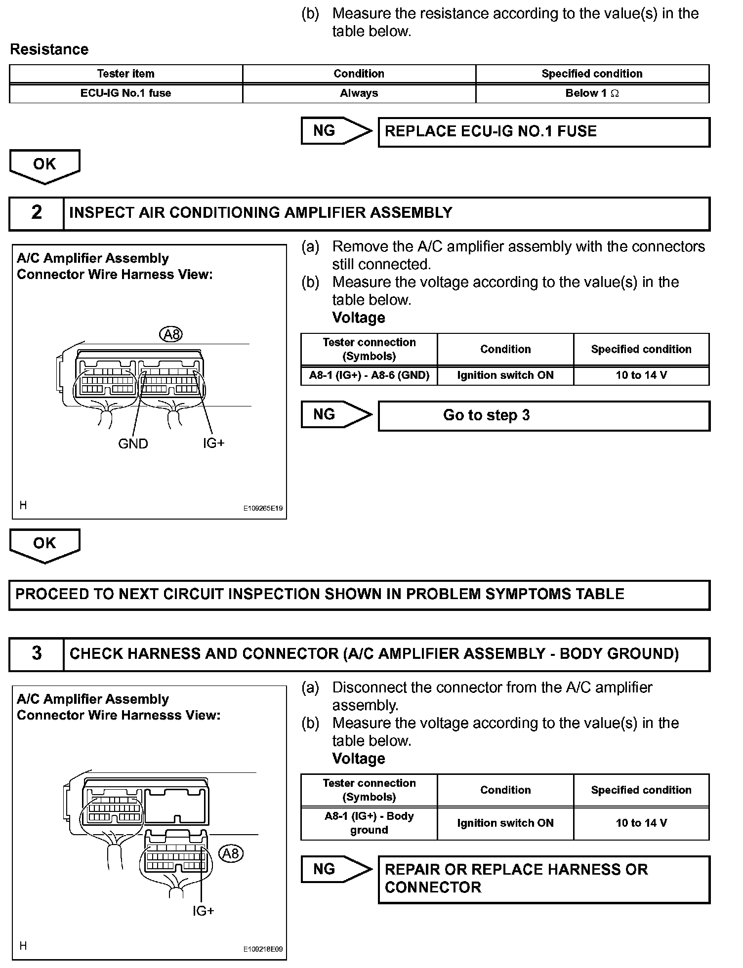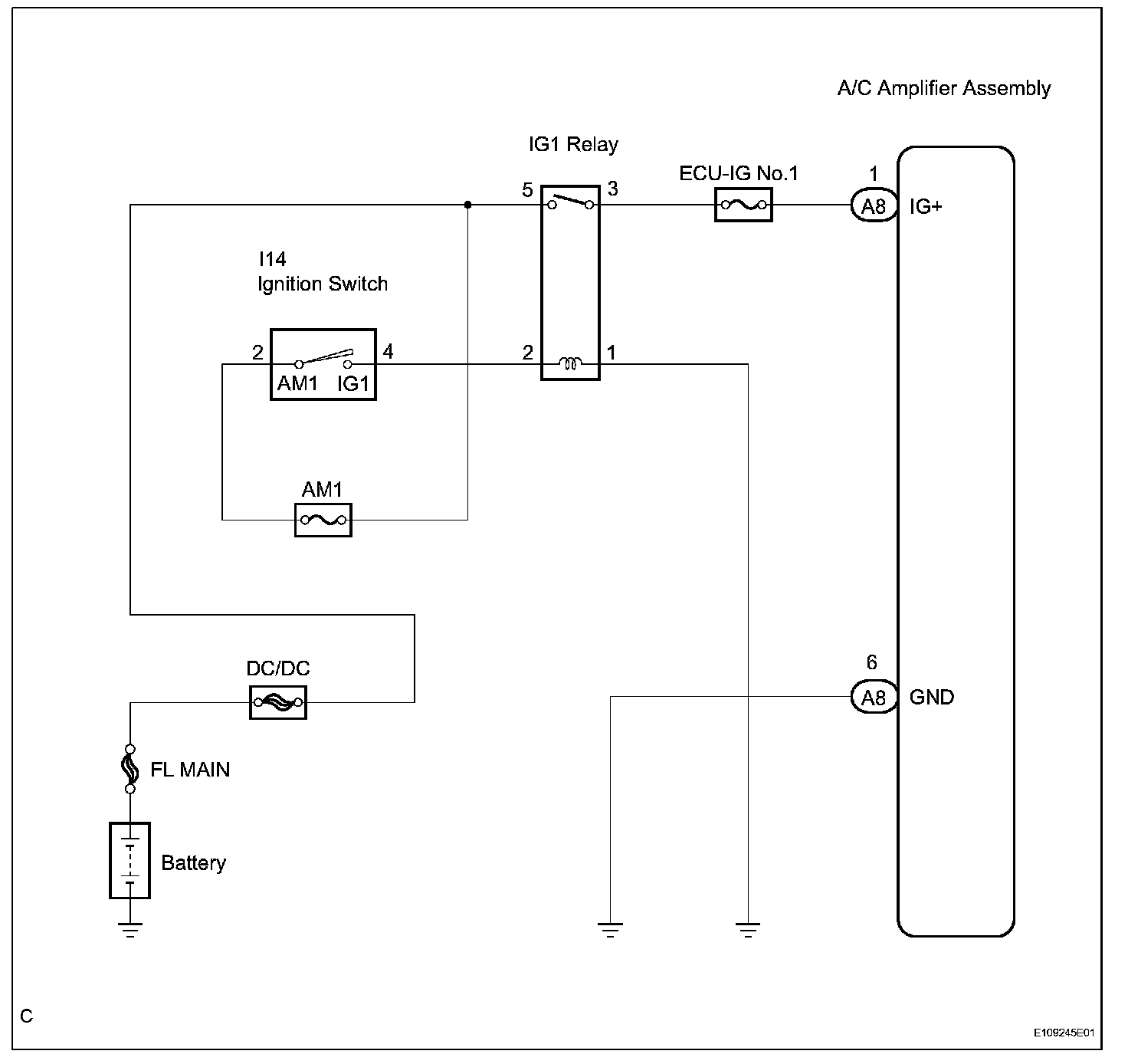 This is the main power source supplied to the A/C amplifier assembly when the ignition switch is turned to the ON position. The power source is used for operating the A/C amplifier assembly and servomotor, etc.