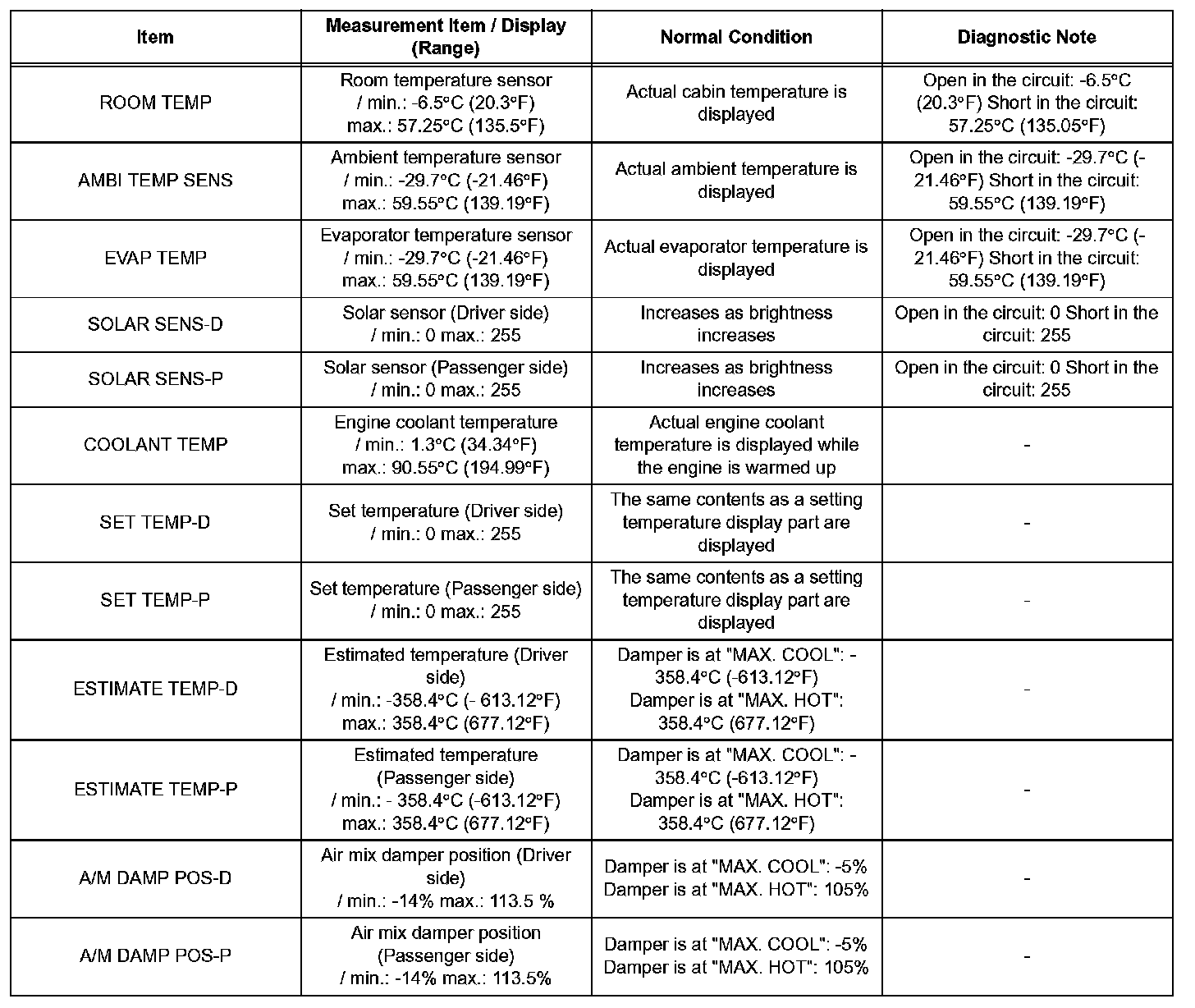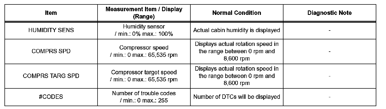 d. Enter the following menus: DIAGNOSIS / OBD/MOBD / AIR CONDITIONER / DATA LIST.