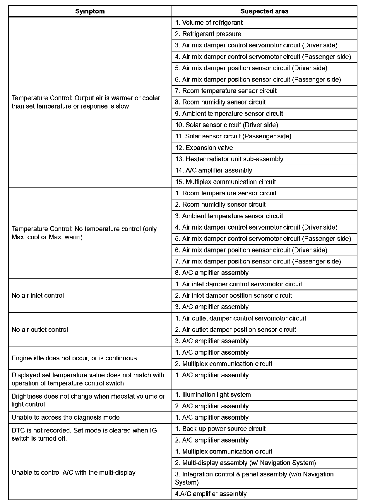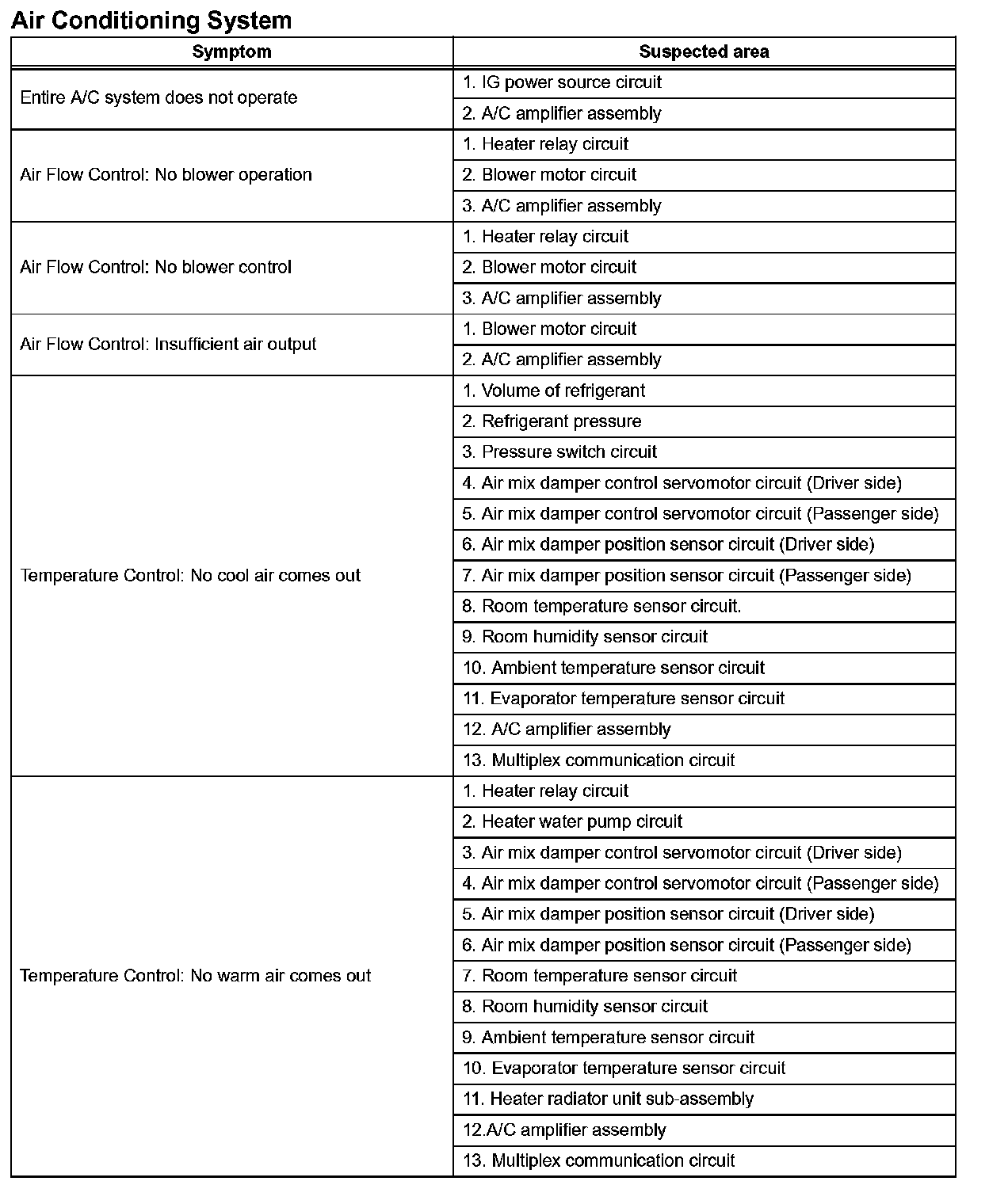 Problem Symptoms Table - Air Conditioning System (Part 2):