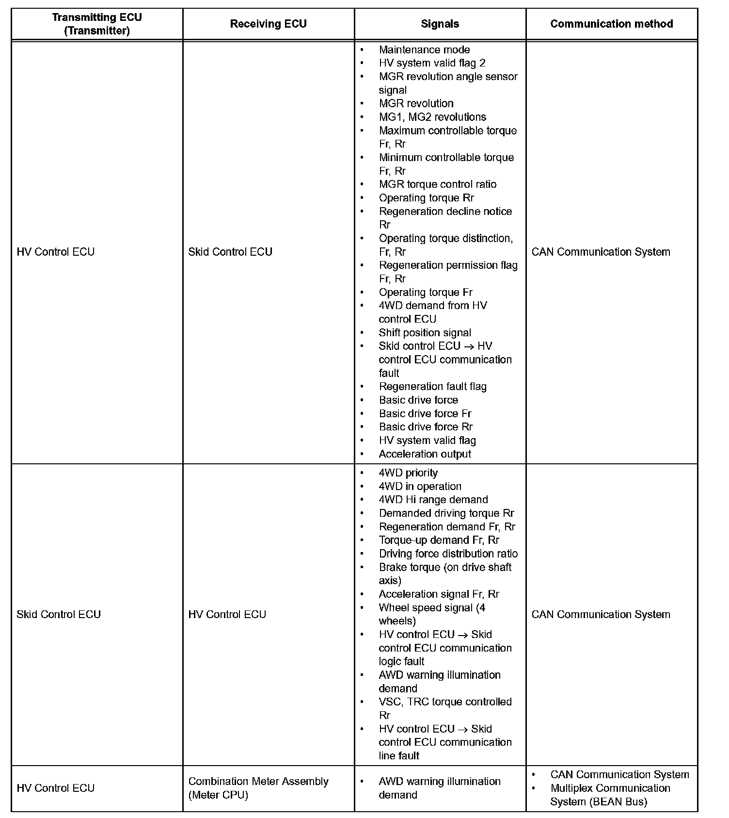 ^ If the vehicle is being driven on a slippery road surface, accelerating, or making a tight turn, the skid control ECU detects the conditions of the vehicle based on the signals provided by the speed sensors, steering angle sensor, and the yaw rate & deceleration sensor. Then, the skid control ECU calculates the torque distribution between the front and rear wheels, and transmits the signals to the HV control ECU.