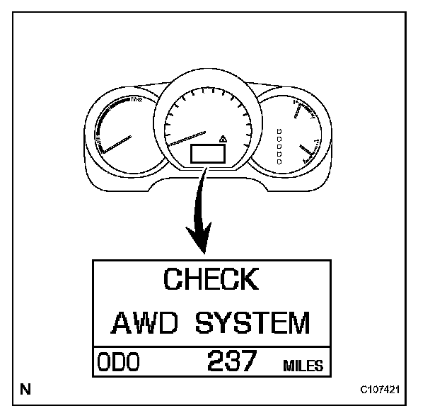 If 4WD driving is prohibited due to a malfunction in the vehicle system, "CHECK AWD SYSTEM" will be displayed on the multi-information display in the combination meter assembly, and operations of the rear transaxle will be prohibited.