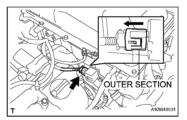 a. Move the outer section to the wire harness side as illustrated, then disconnect the circuit breaker sensor No.1.