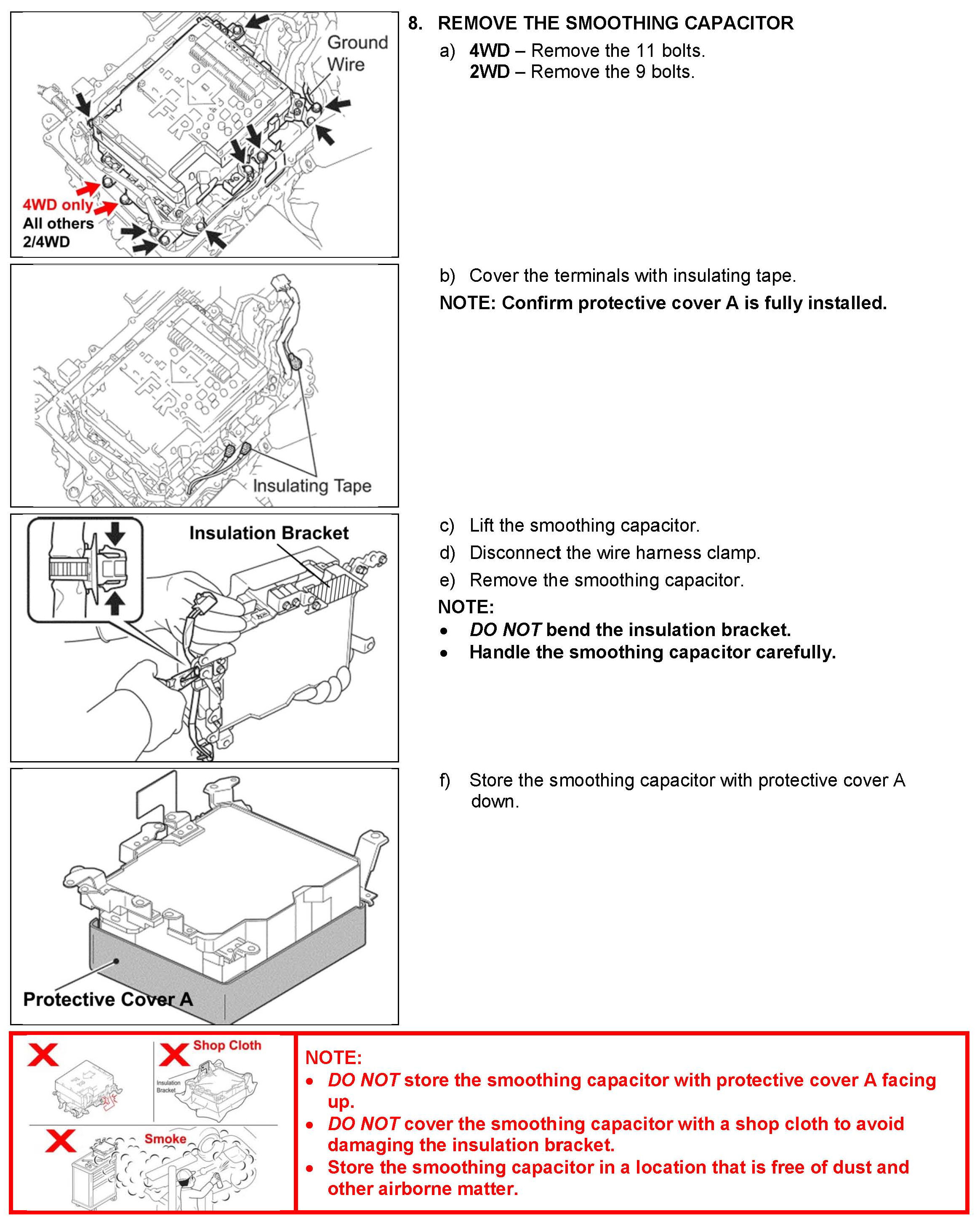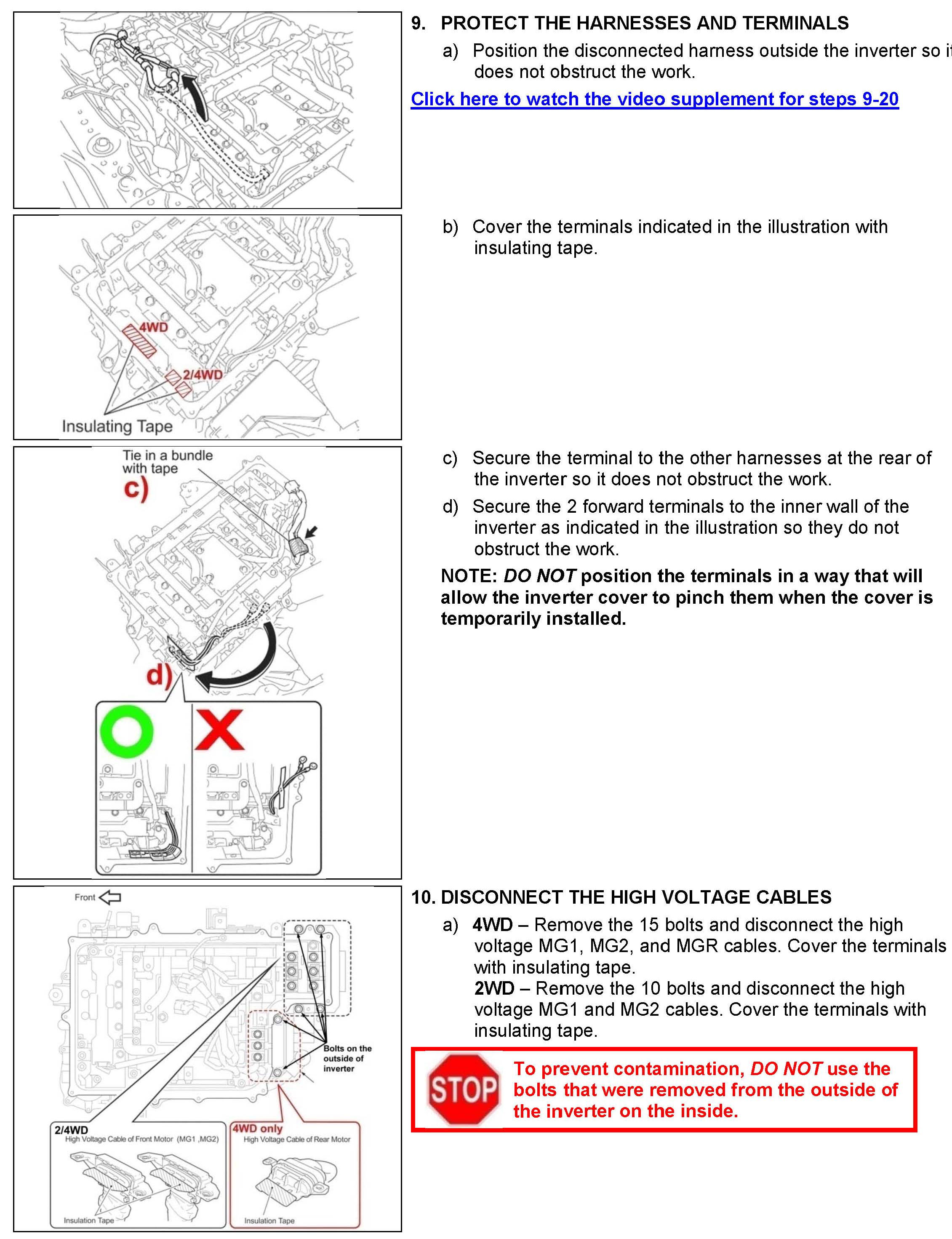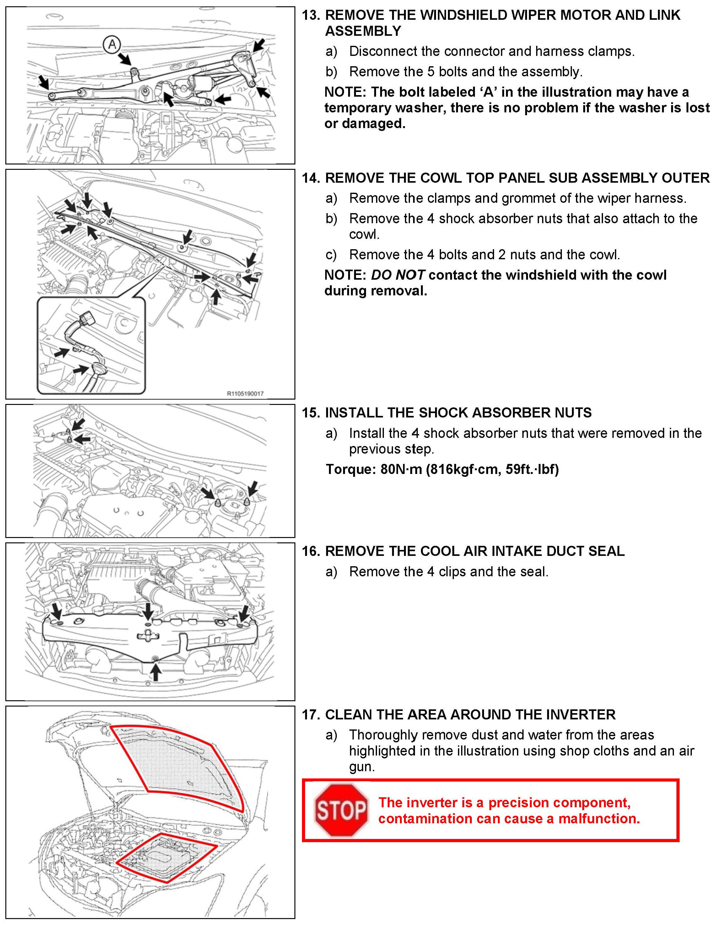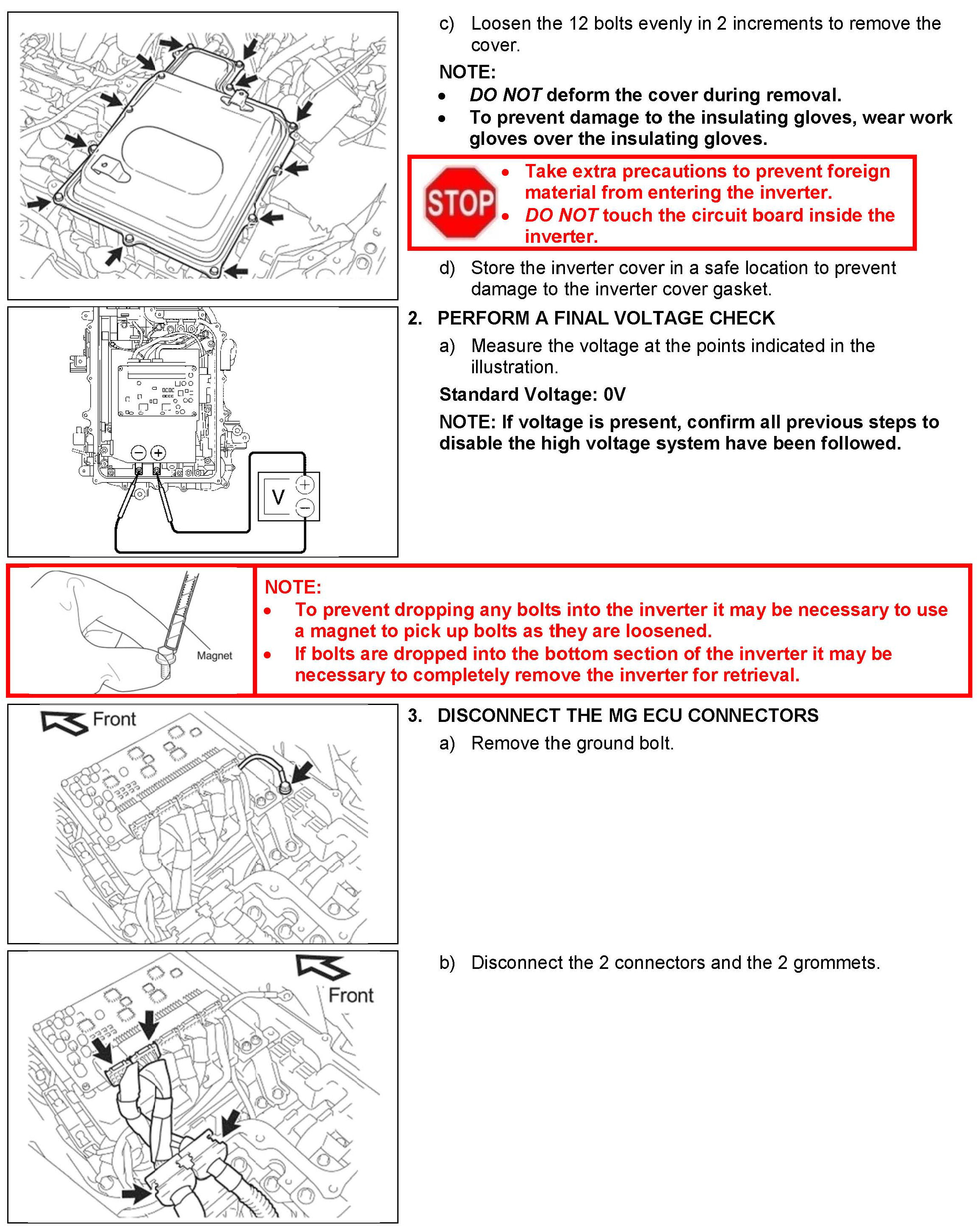 B. Vehicle Disassembly, C. Inverter Disassembly and D. Inverter Cleaning