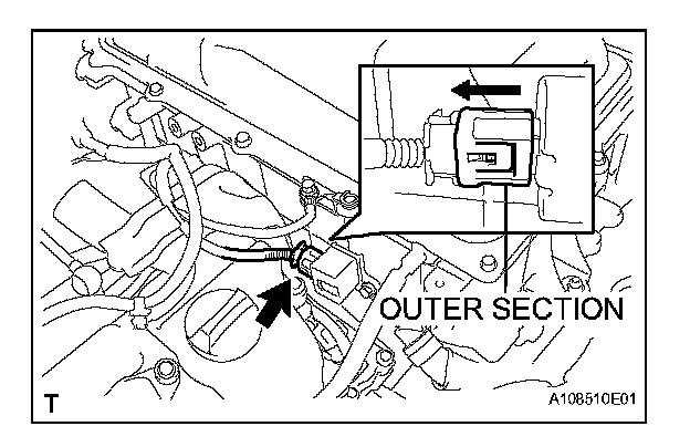 a. Move the outer section to the wire harness side as illustrated, then disconnect the circuit breaker sensor No.1.