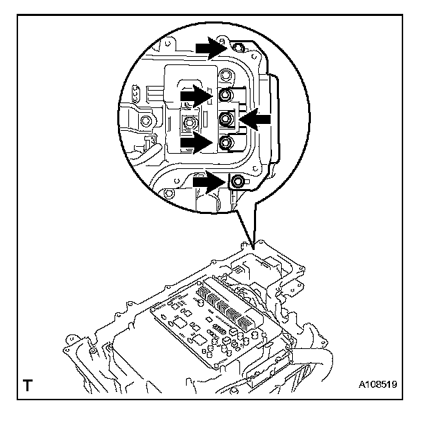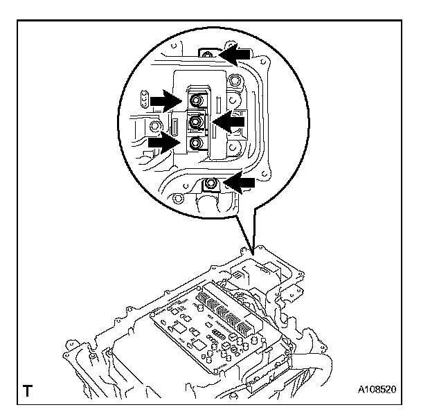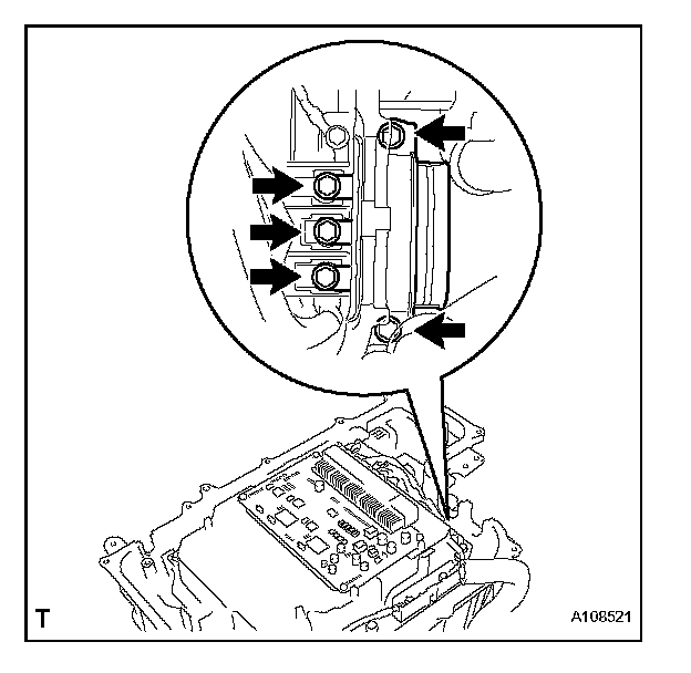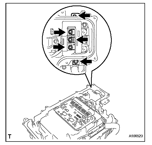 a. Remove the 5 bolts, and disconnect the high voltage cables of the Motor from the w/ converter inverter assembly.