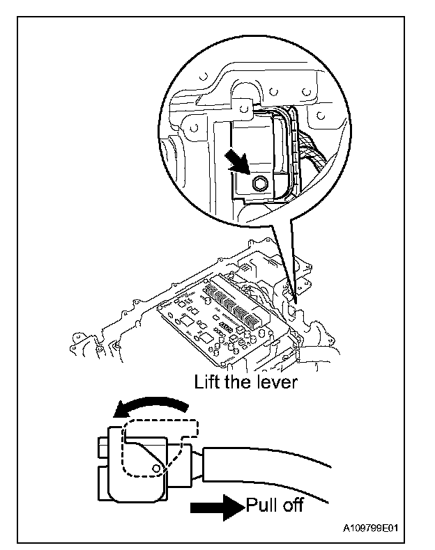 b. Remove the bolt and lift the lever to disconnect the No.3 wire frame from the w/ converter inverter assembly.