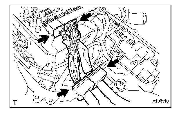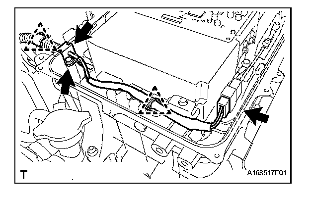 b. Disconnect the connector, clamps and grommet, and separate the engine wire No.4 from the w/ converter inverter assembly.