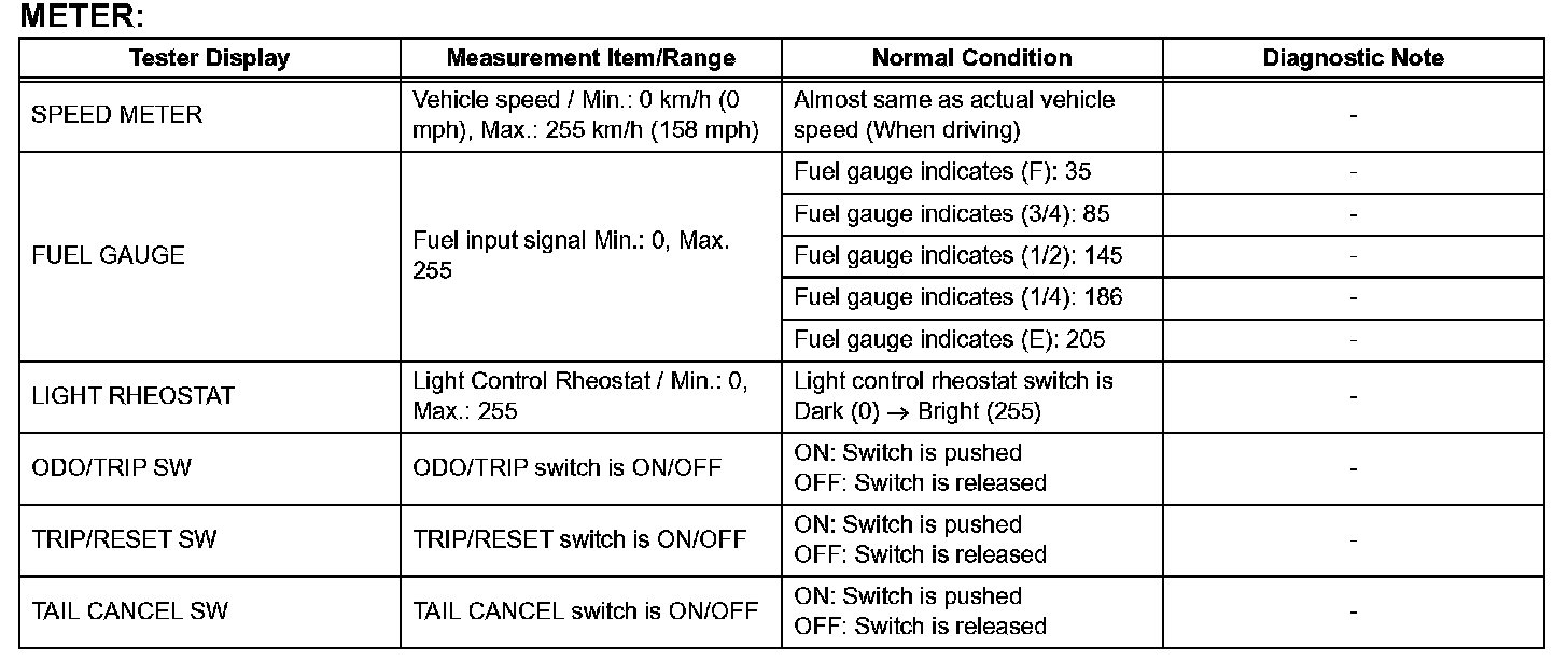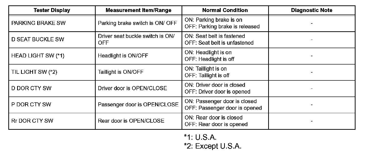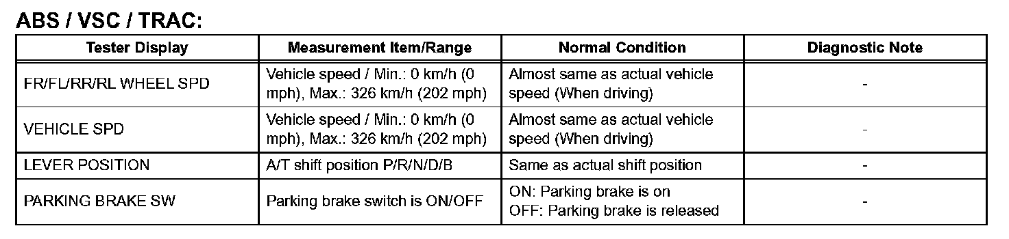 DATA LISTAccording to the DATA LIST displayed by the intelligent tester, you can read the values of the switches, sensors, actuators and so on without parts removal. Reading the DATA LIST as the first step of troubleshooting is one method to shorten work time.