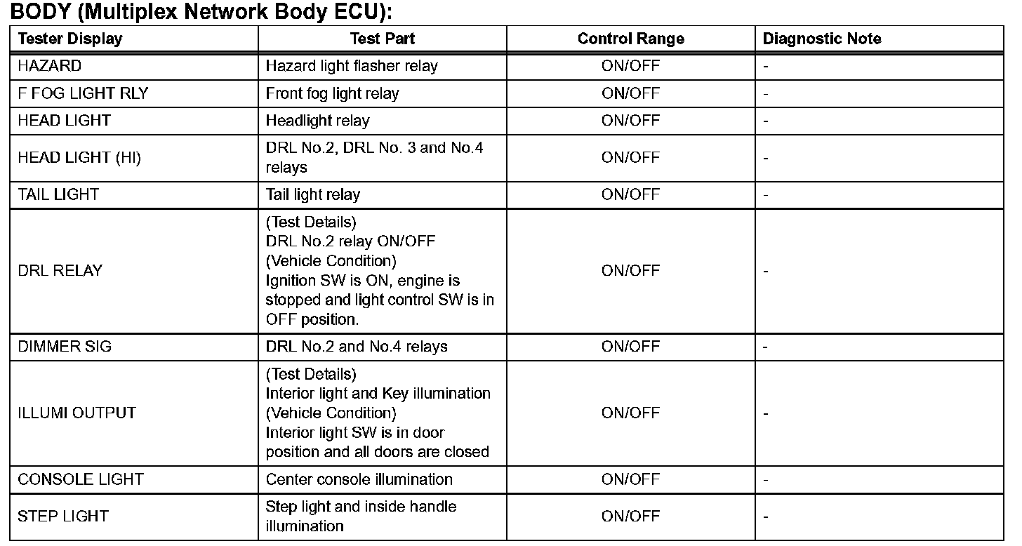 ACTIVE TESTHINT: Performing the ACTIVE TEST using the intelligent tester allows the relay, VSV, actuator, etc. to operate without removing any part. Performing the ACTIVE TEST as the first step of troubleshooting is one of the methods to shorten labor time. The DATA LIST can be displayed during the ACTIVE TEST.