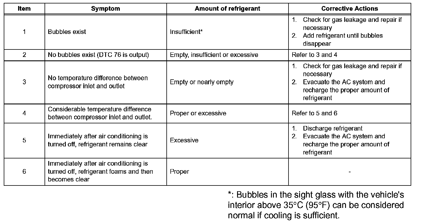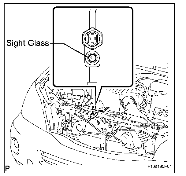 a. Check the sight glass on the air conditioning tube & accessory assembly.