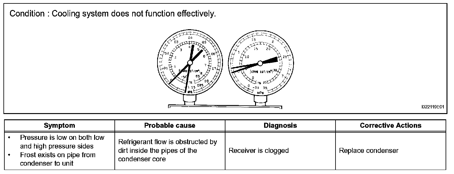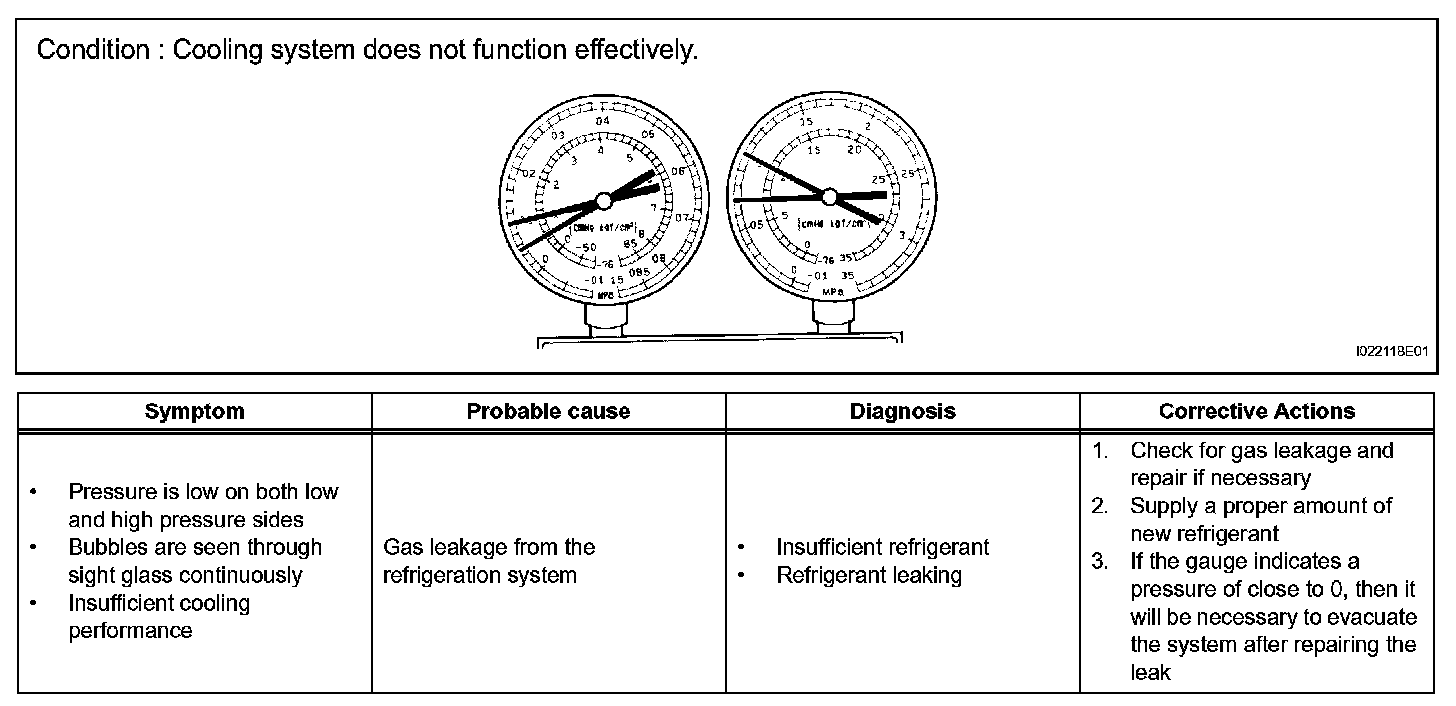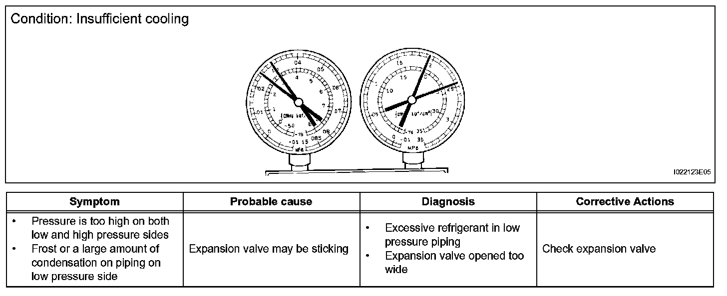 HINT: This is a method where a manifold gauge set is used to help locate the problem.