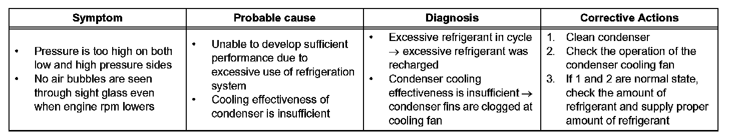 6. Refrigerant is overcharged or cooling effectiveness of condenser is insufficient.