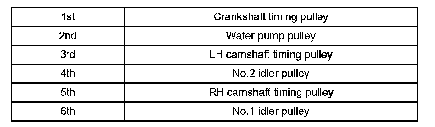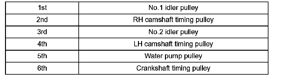 k. Install the timing belt in the following order.