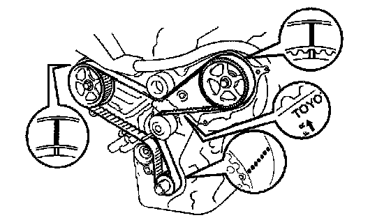 b. If reusing the timing belt, check that there are 3 installation marks on the timing belt as shown in the illustration.