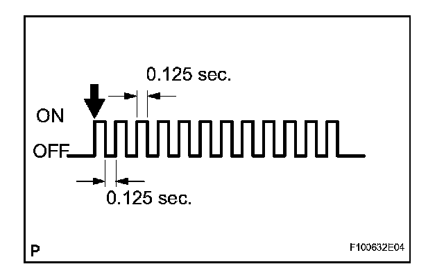 Every time the test mode DTC erasure conditions are satisfied, the tire pressure warning light comes on for 1 second. Then, the tire pressure warning light blinks at 0.125-second intervals.