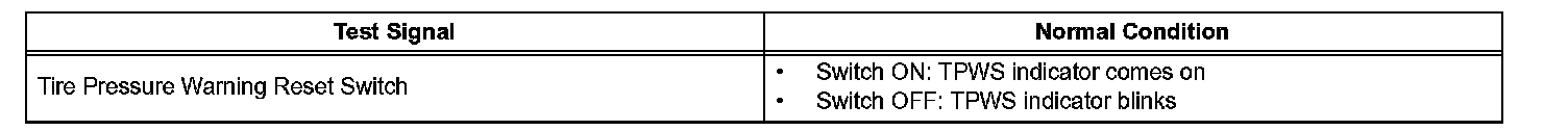 ^ Operation of the tire pressure warning reset switch can be checked in TEST MODE.