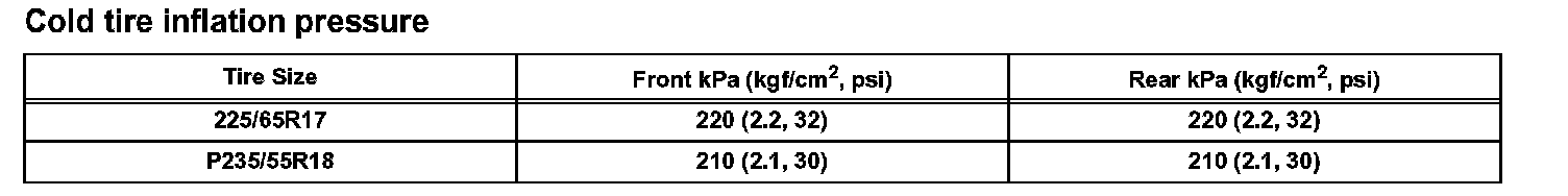 ^ Specified tire pressure changes depending on the size or type of the tire.