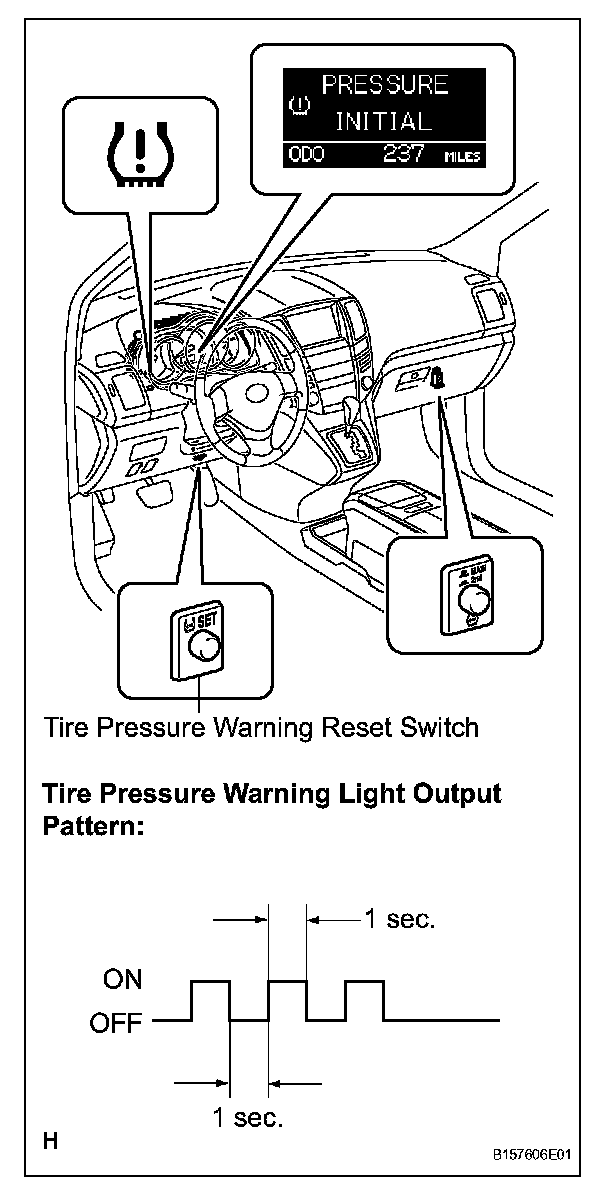 (f) Check that the tire pressure warning light blinks 3 times (1 second ON and 1 second OFF) and "PRESSURE INITIAL" appears on the multi-information display.
