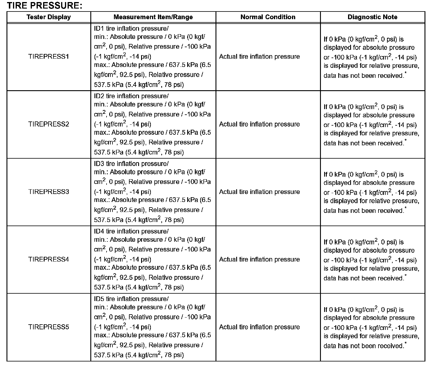 (a) Confirm that the data of tire pressure of all tires are displayed on the intelligent tester screen.