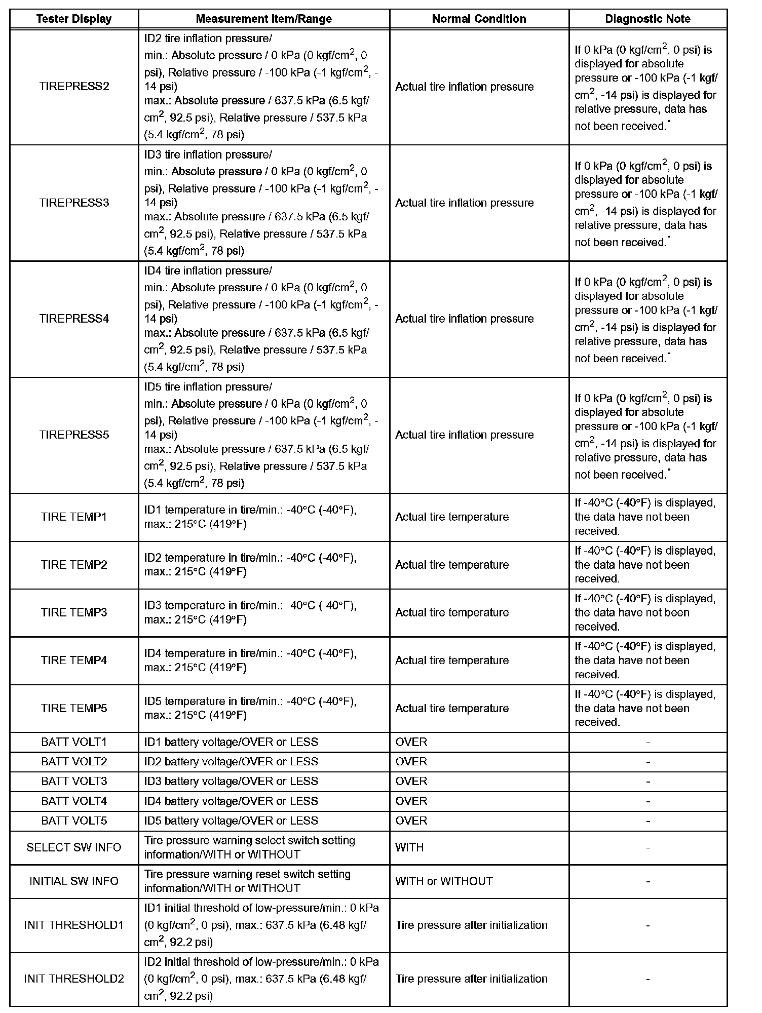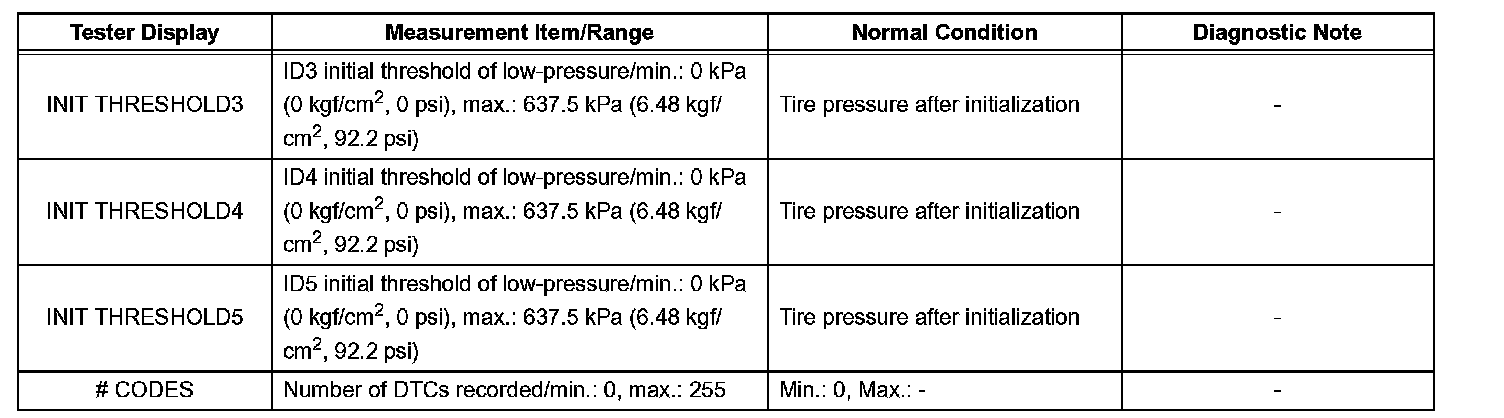 *2: It may take approximately 2 or 3 minutes until the values are displayed. If the values are not displayed after a few minutes, perform troubleshooting according to the inspection procedure for DTCs C2121/21 to C2125/25. C2121