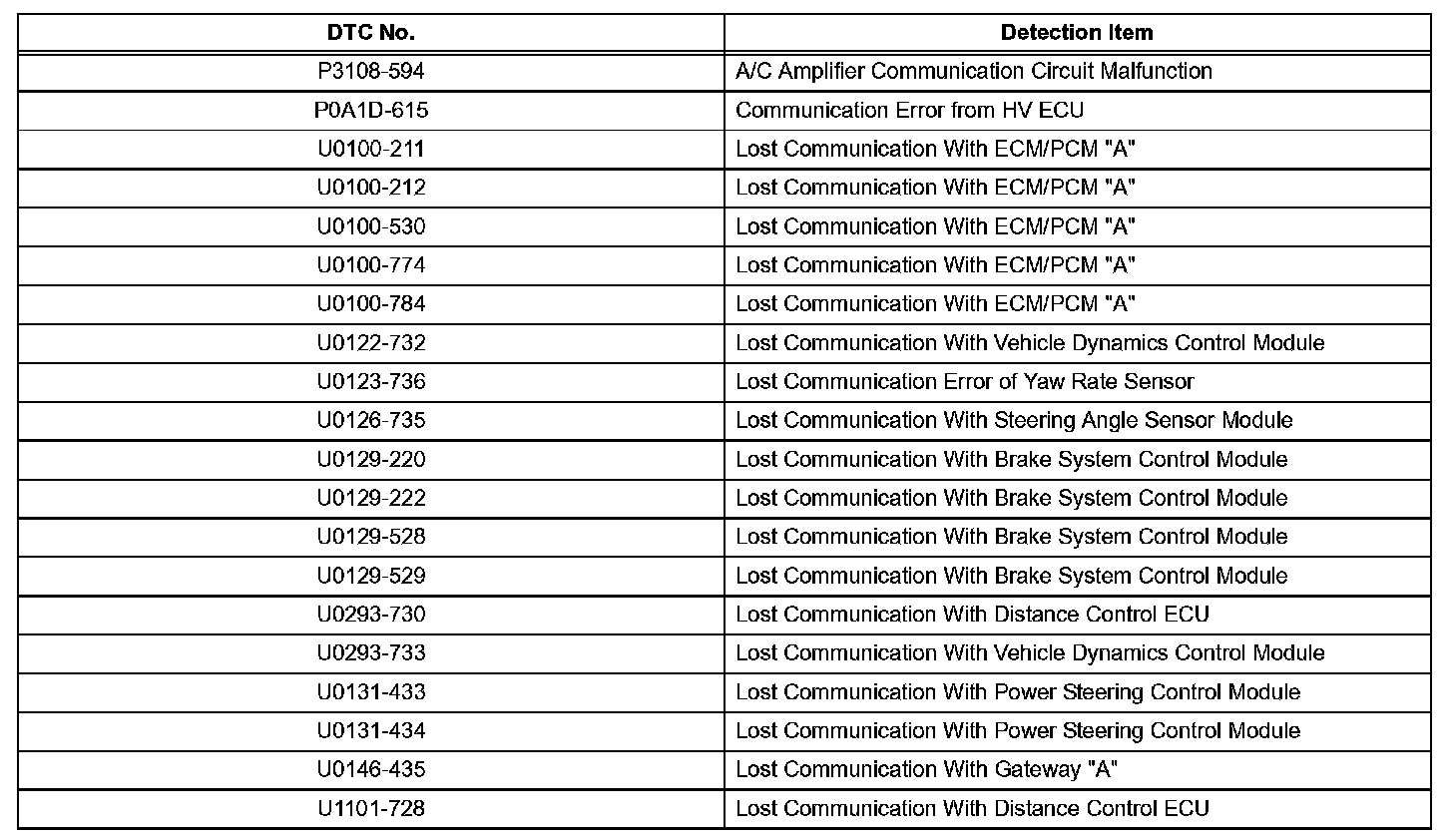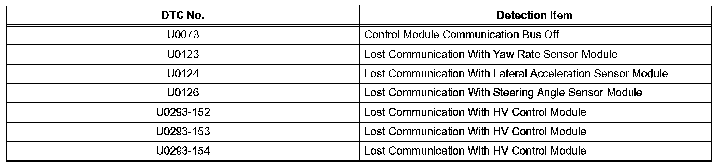- U0110-159, U0110-160, U0110-656, and U0110-657 are not the DTCs for the CAN communication system. Therefore, refer to the troubleshooting procedures for the hybrid control system.