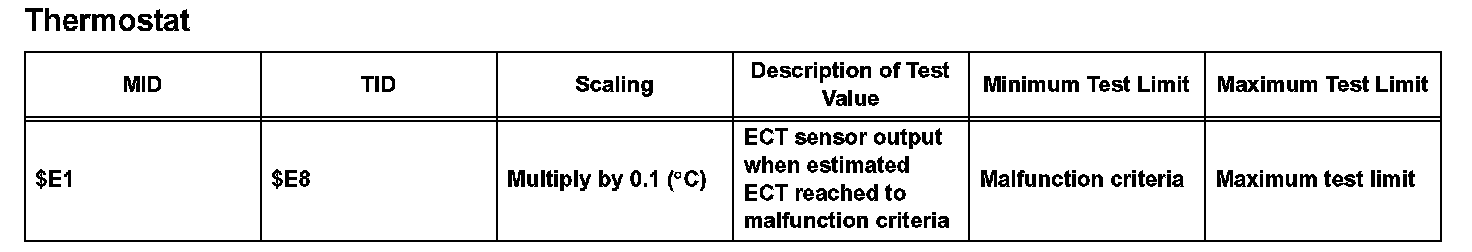 The test value and test limit information are described as given in the following table. This information is included under "MONITOR RESULT" in the emissions-related DTC sections: