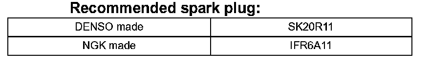 Correct electrode gap for new spark plug: 1.0 to 1.1 mm (0.039 to 0.043 in.)