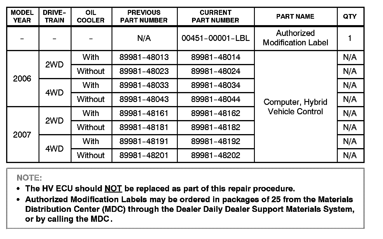 ^ Anytime the HV ECU is reprogrammed, the engine ECM (PCM) MUST also be reprogrammed, even if the engine ECM (PCM) has the "New Calibration ID".