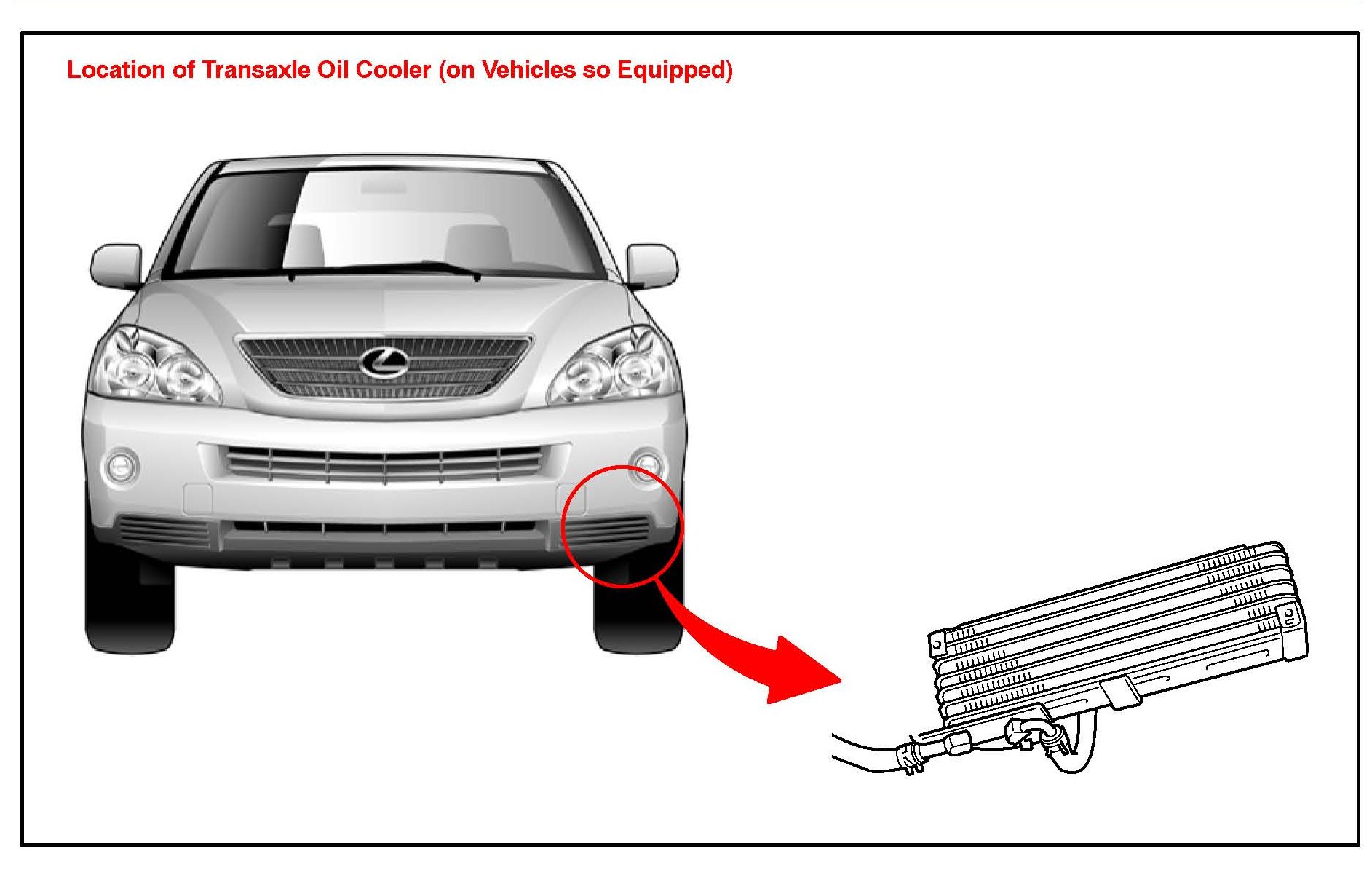 There are different calibration files for vehicles with and without transaxle oil coolers. In order to determine the configuration of your vehicle, shine a flashlight into the left front bumper cover vent. If the vehicle is equipped with a cooler, it will be easily visible.