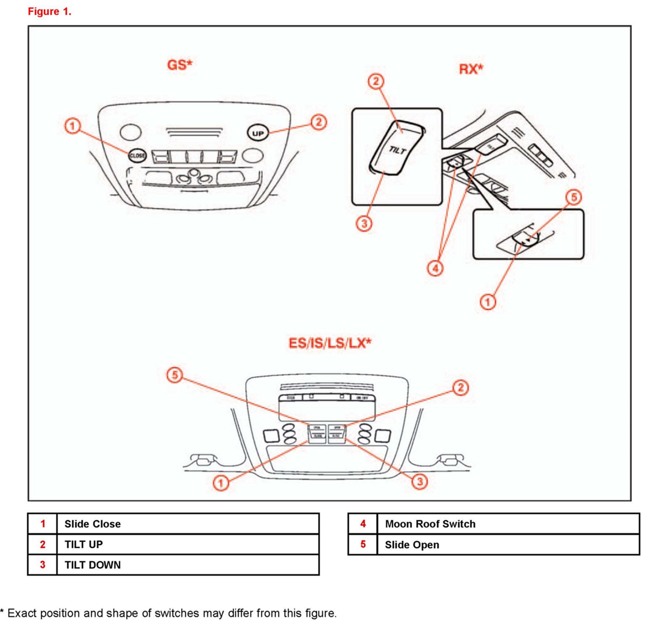 Some Lexus models may exhibit a condition where the moon roof will not AUTO close (from the tilt or slide position). If either one of these conditions is present, perform the re-initialization procedure in this bulletin.