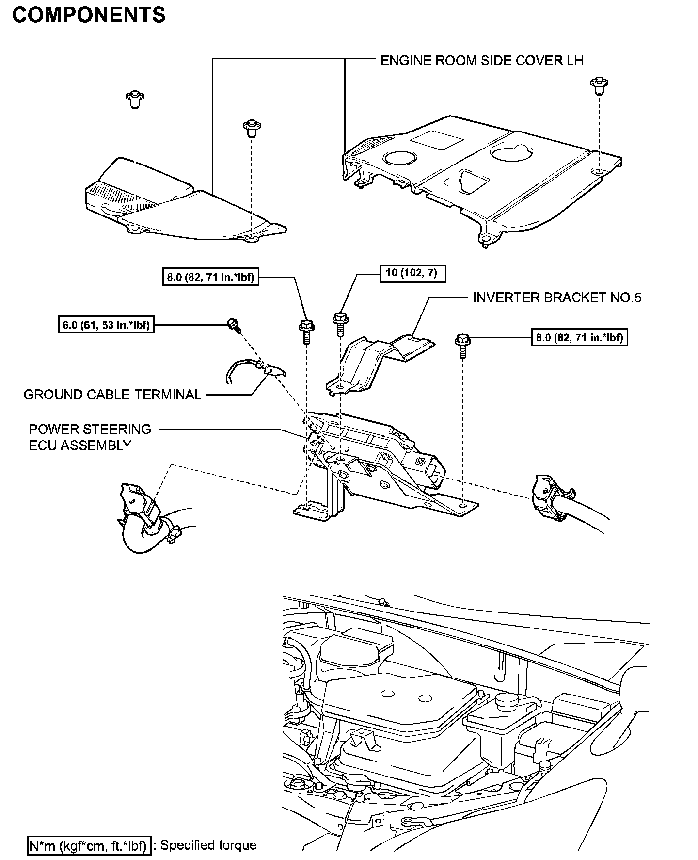 (d) Install the ground cable terminal to the power steering ECU assembly with the bolt.