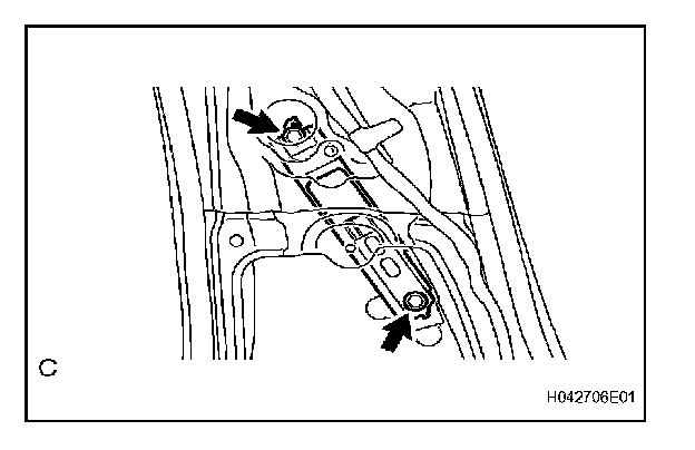 - When installing the side airbag sensor LH, be careful that the SRS wiring does not interfere with other parts and that it is not pinched between other parts.
