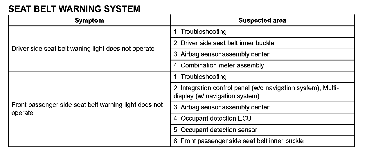 Problem Symptoms Table - Seat Belt Warning System:
