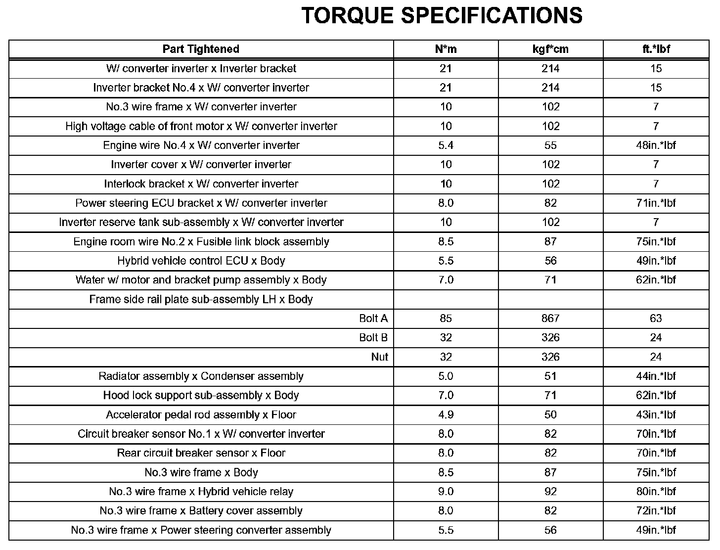 Hybrid Vehicle Control - Torque Specifications: