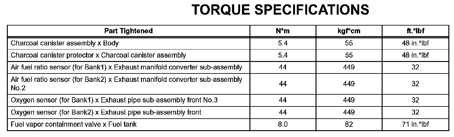 Emission Control - Torque Specifications: