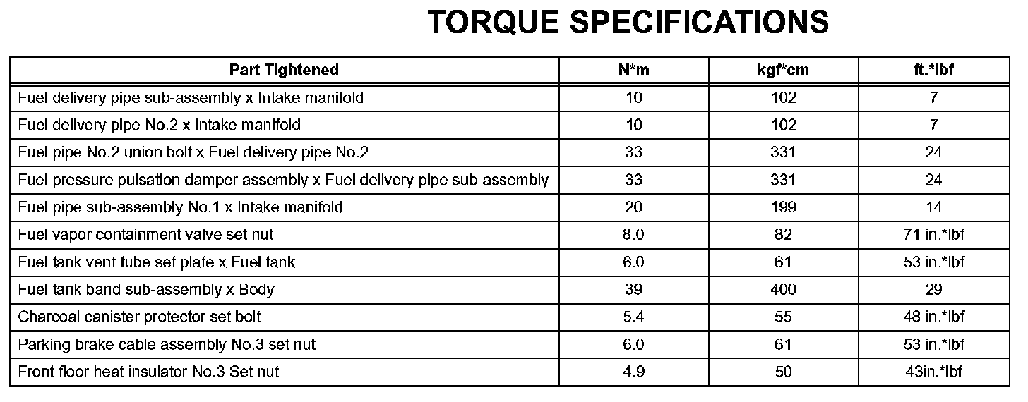 Fuel - Torque Specifications: