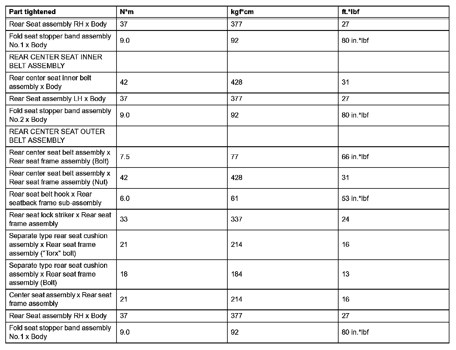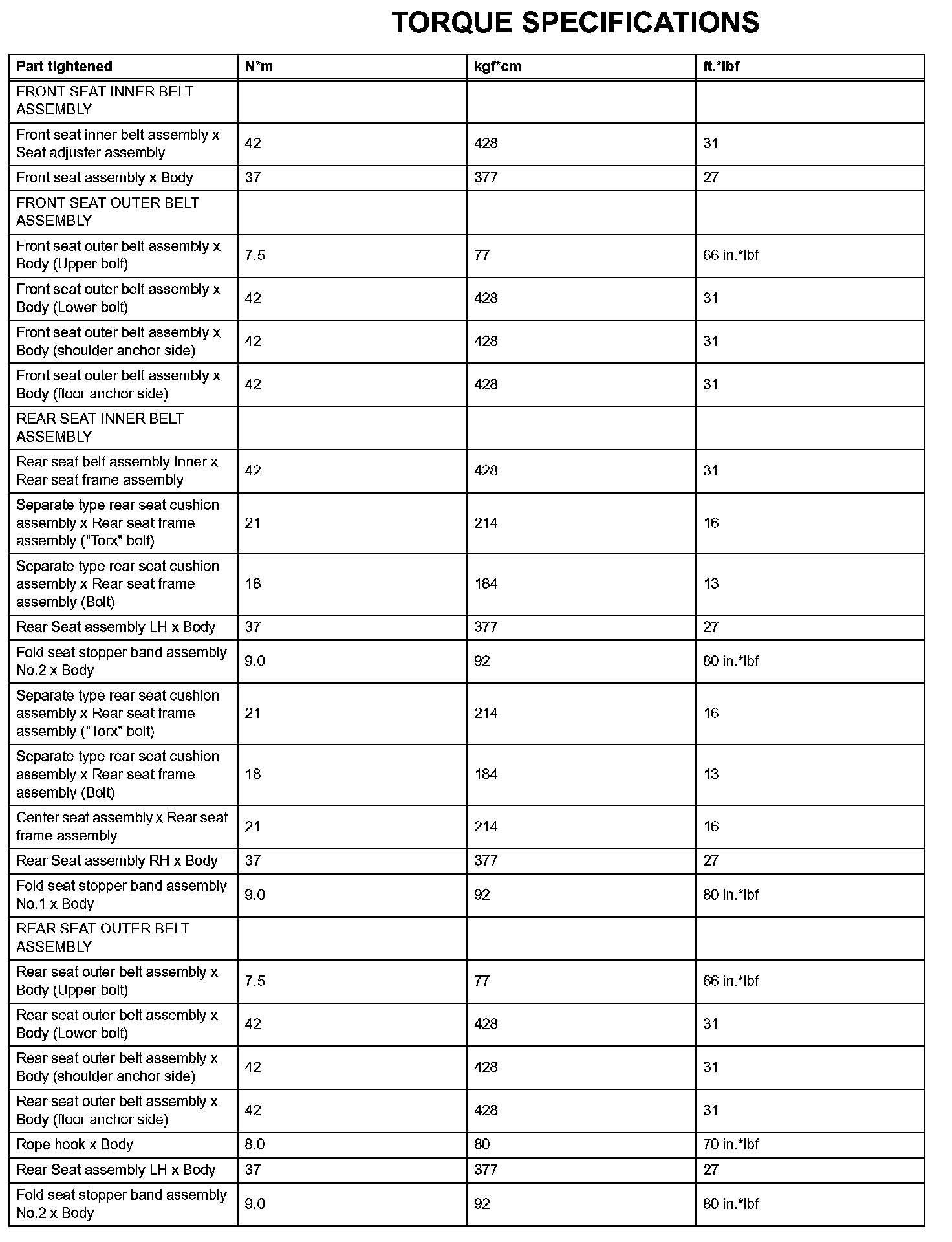 Seat Belt - Torque Specifications (Part 2):