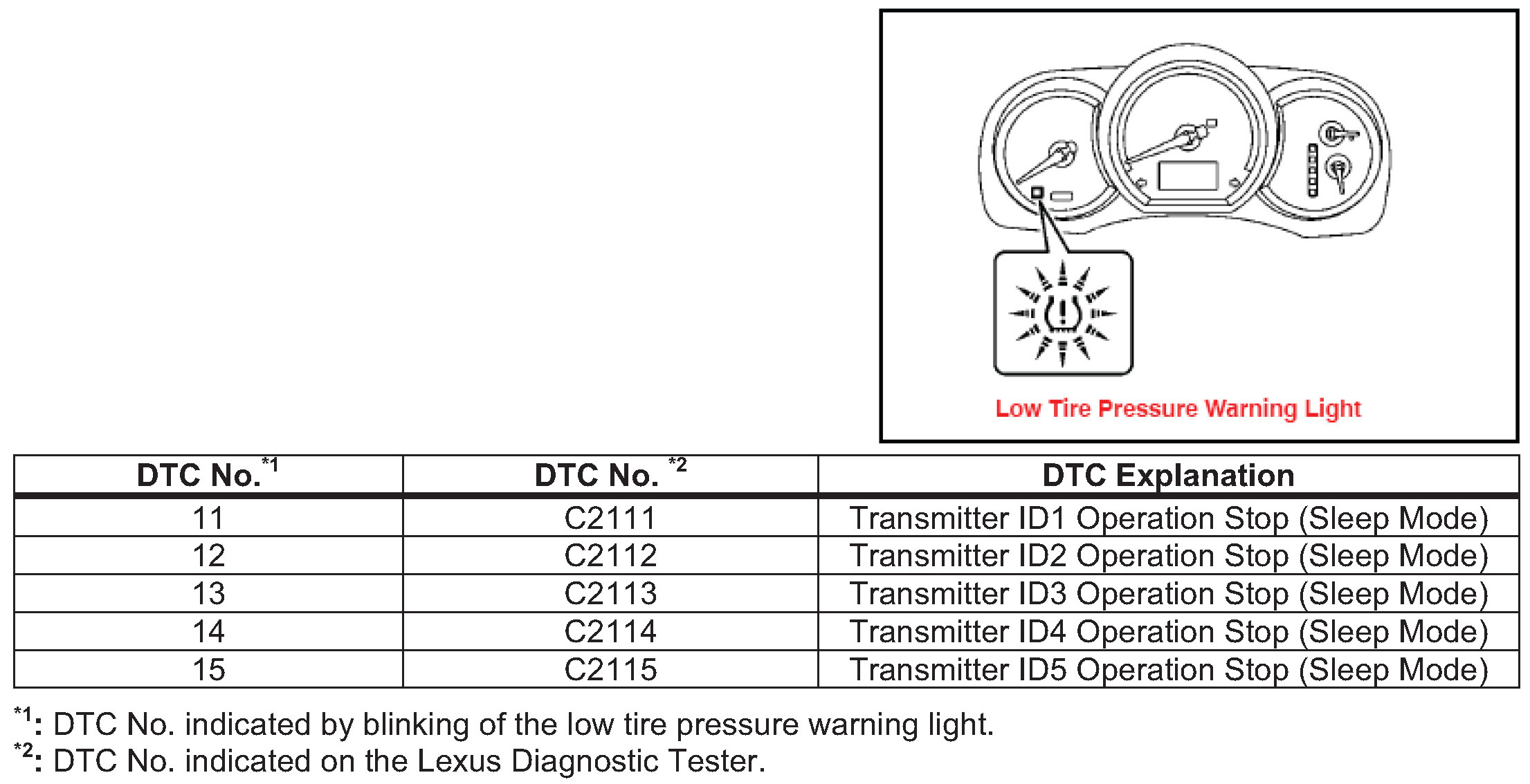 - The Diagnostic Trouble Codes listed may be stored in the TPWS ECU until the tire pressure warning valves/sensors are activated.