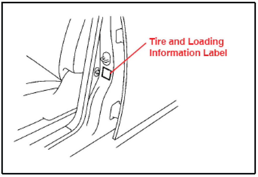 6. Adjust all tires (including the spare tire) to the standard tire inflation pressure, as indicated on the Tire and Loading Information label located inside the driver's door jam and confirm that the Low Tire Pressure Warning Light is OFF.