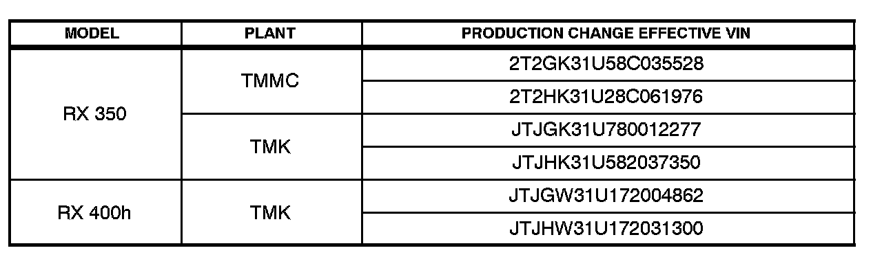 ^ 2007 model year RX 350/400h vehicles produced BEFORE the Production Change Effective VINs shown below.