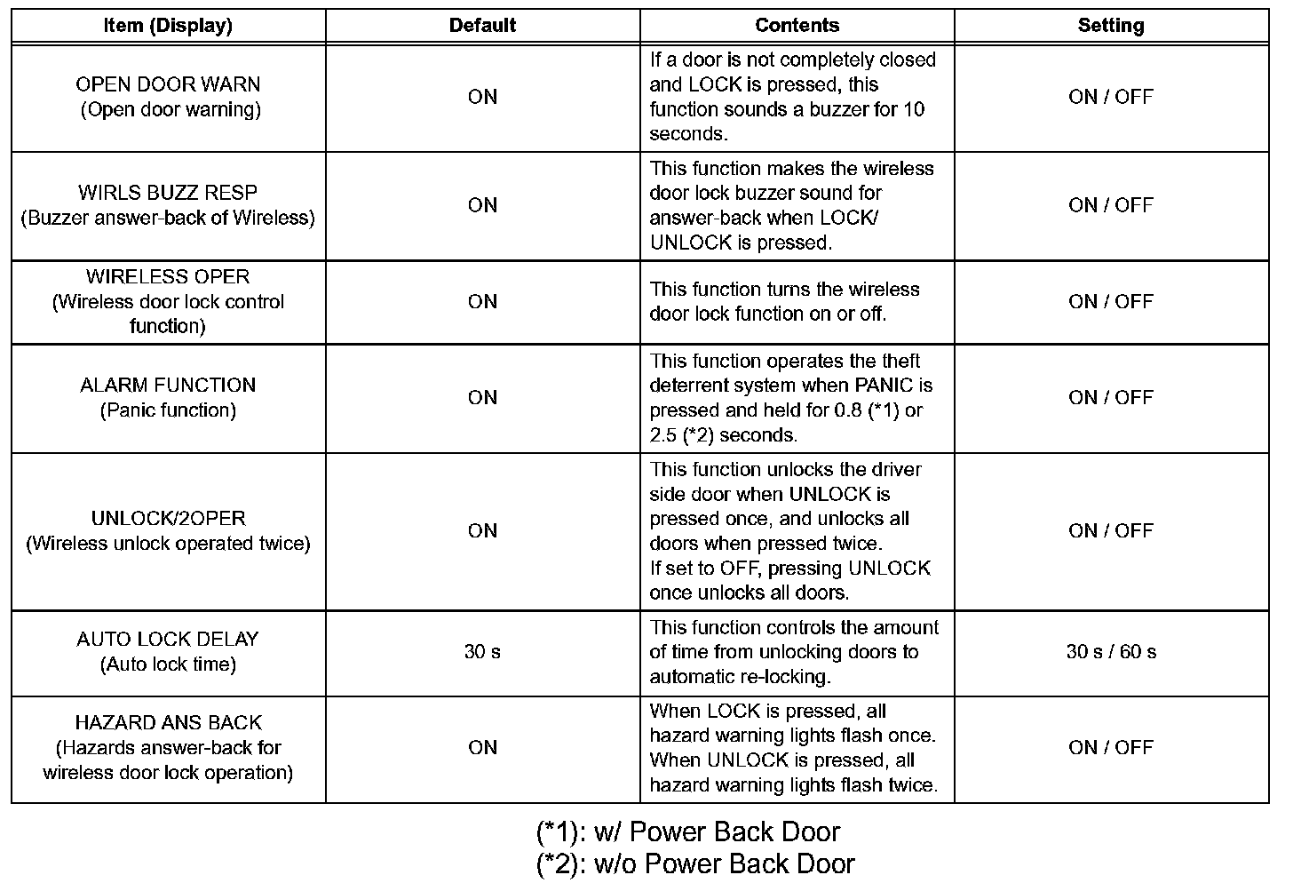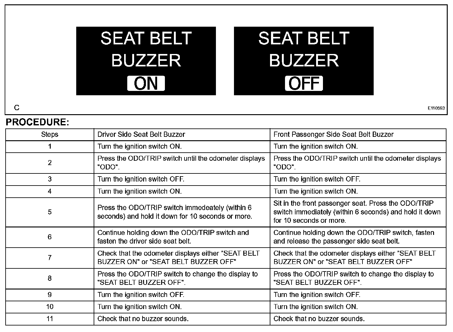 NOTE: Basically, these buzzers should be set on for safe driving. Perform the procedures only if it is necessary to set the buzzer off.