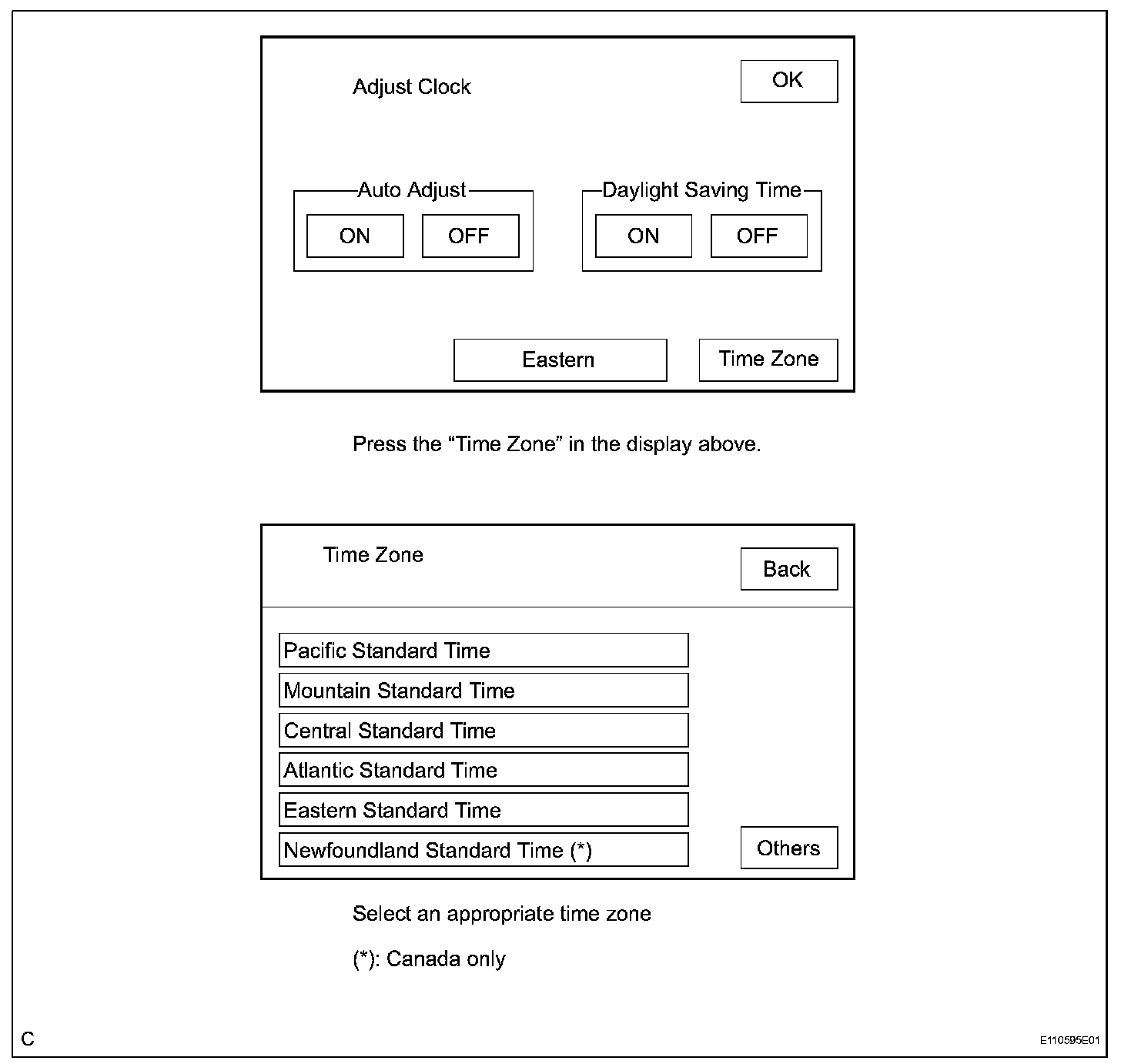 c. TIME ZONE SETTING (w/ Navigation System)